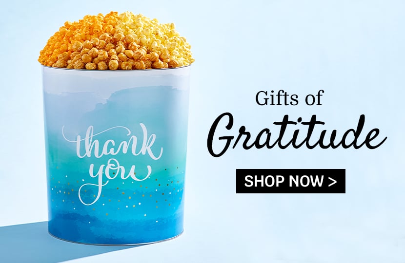 Our popcorn store and our happy band of popcorn poppers have been delighting people with gourmet popcorn and delicious snacks and gifts since 1979! Whether you're shopping for family, friends, teachers or business associates, The Popcorn Factory® has great gourmet popcorn gift ideas for every occasion: birthday popcorn, gift baskets, graduation popcorn, college gifts, student care packages, movie night popcorn or game night popcorn, kids popcorn gifts, popcorn balls to eat and decorate, corporate parties, business events, special times with loved ones and every holiday under the sun. Browse popcorn gift sets for any celebration and everyone is sure to be satisfied! Buy our popcorn online and get fresh, tasty snacks delivered to your door.