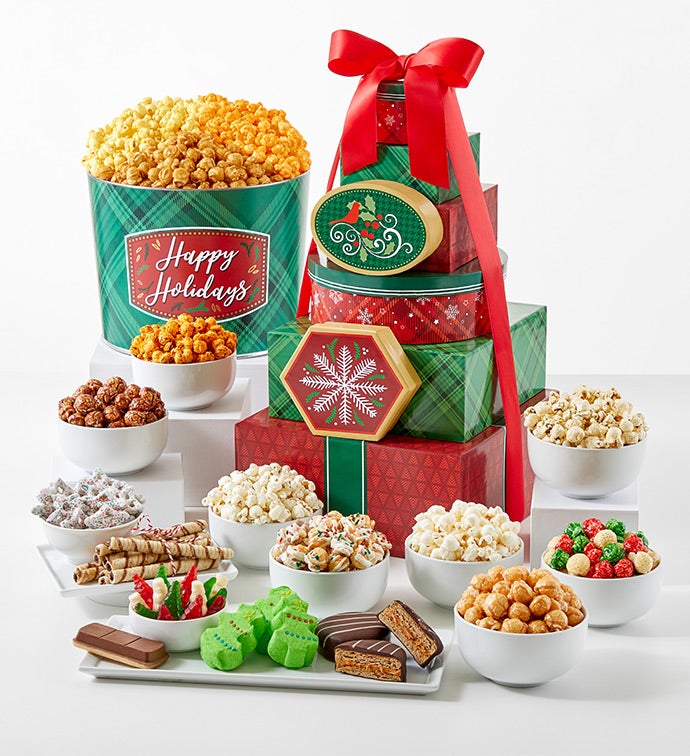 Happy Holidays 3 1/2 Gallon 3 Flavor Popcorn Tin